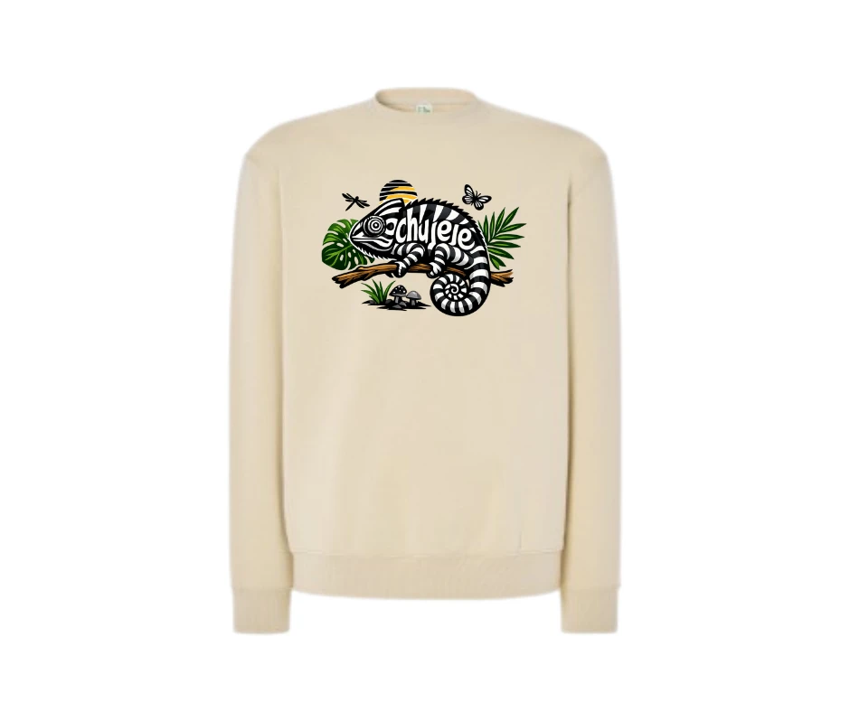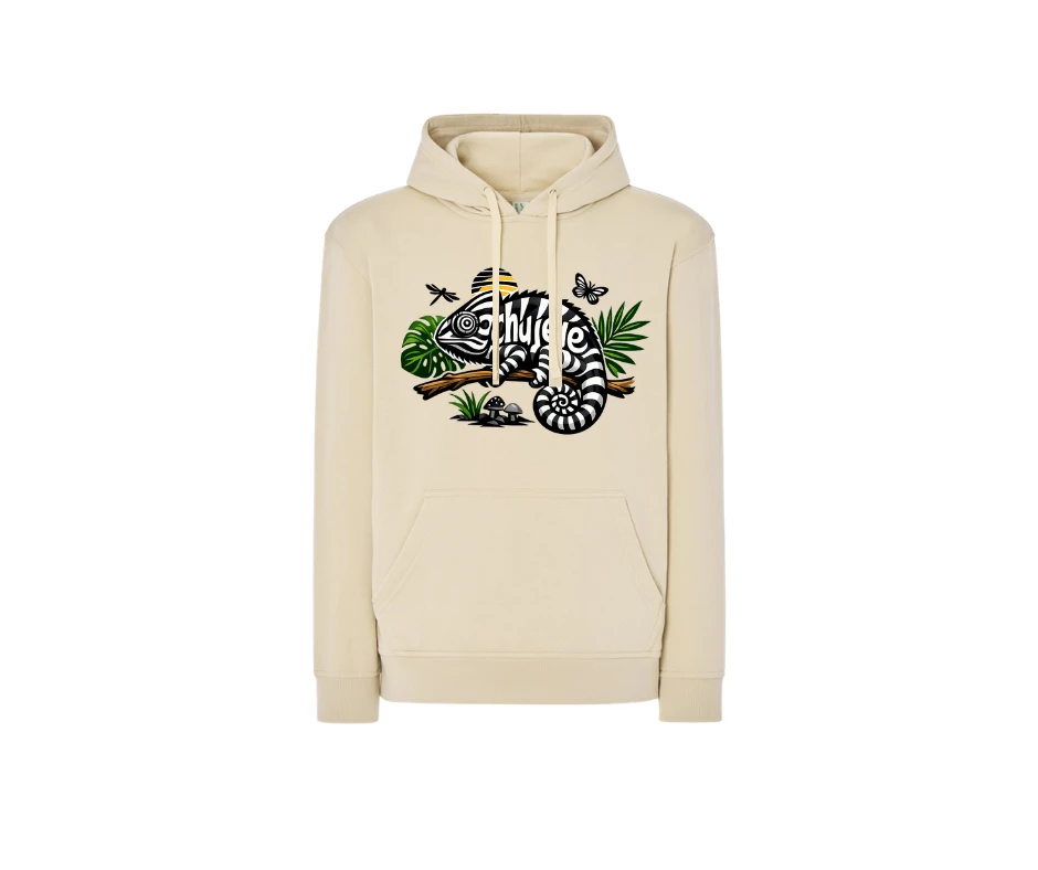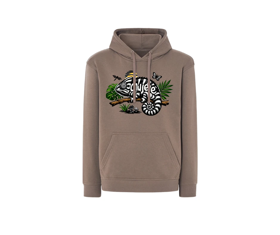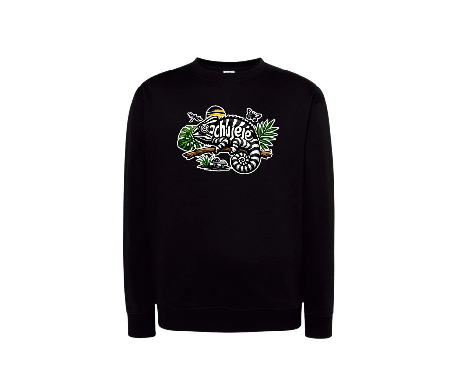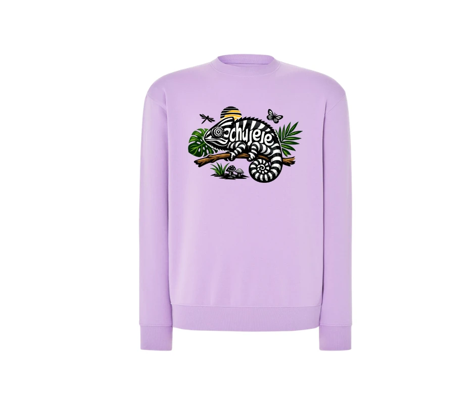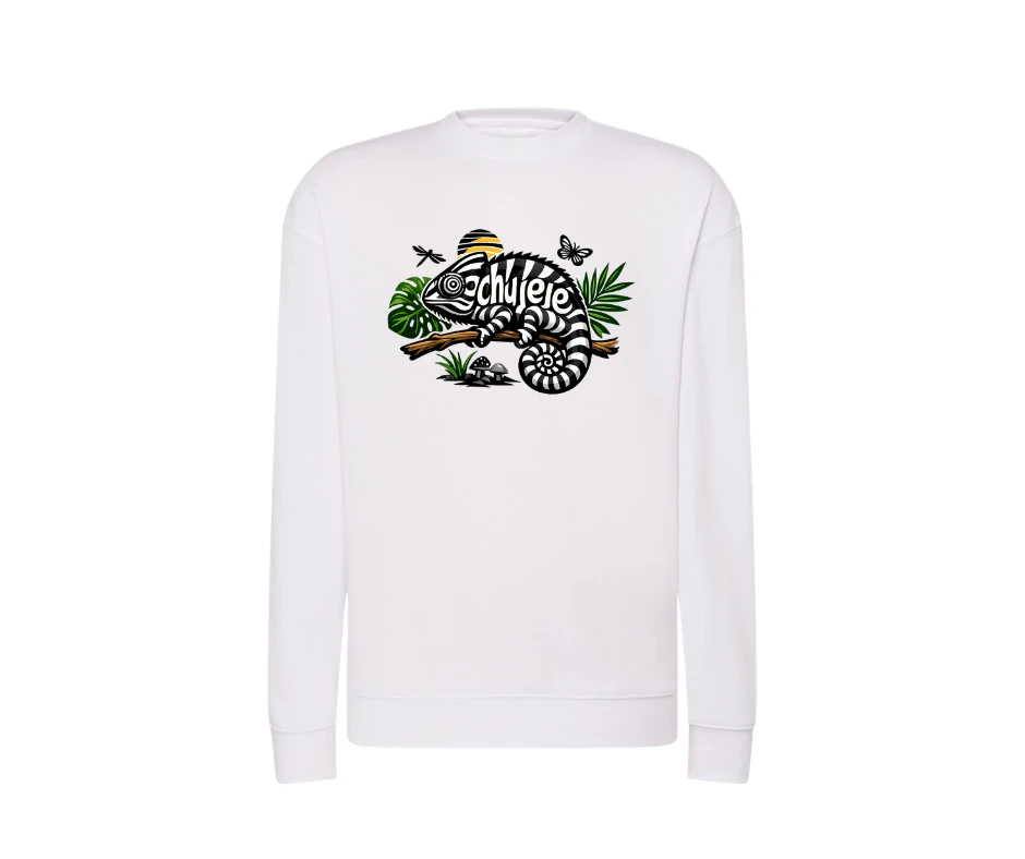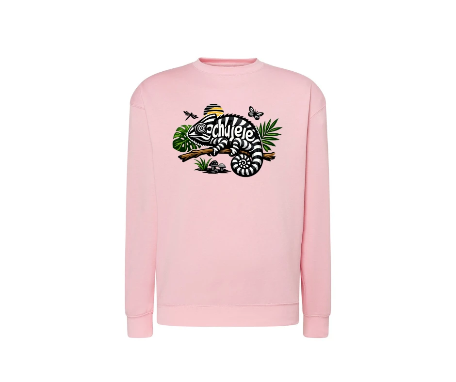 Zabawna bluza z kameleonem i ukrytym napisem.
